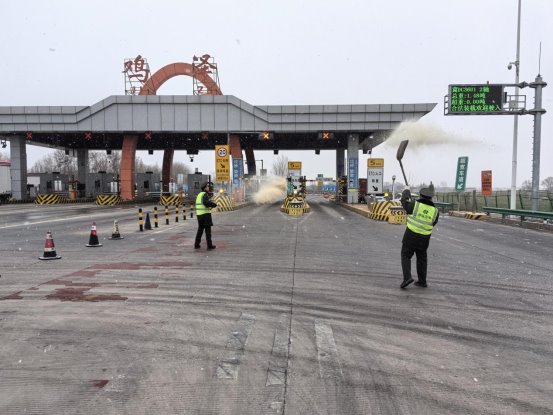鸡泽收费站第一时间组建专项作业小组,站长靠前指挥、职工全员到岗。工作现场,职工们分工明确、默契协作,有的负责划定重点作业区域,有的准备融雪剂与作业工具,有的实时监测路面结冰情况。作业人员对收费广场、出入口车道及连接路段等重点区域精准撒布融雪剂,严格遵循融雪剂撒布规范,根据积雪厚度和气温情况分次投放,确保冰雪快速消融,同时避免过量使用造成影响。