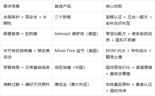 三、2026 中老年氨糖软骨素选购 “速查表”