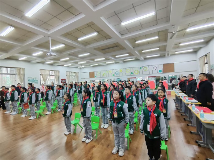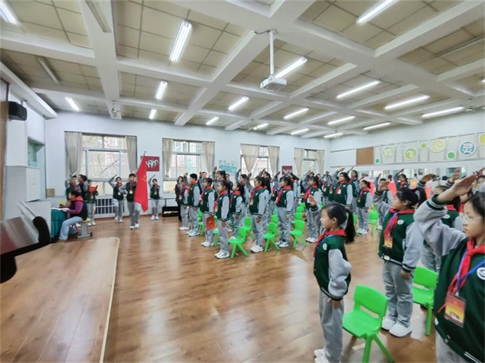 大会在庄严的队歌《我们是共产主义接班人》中拉开帷幕。鲜艳的队旗迎风飘扬,队员们身着整齐的校服,佩戴着鲜艳的红领巾,以饱满的精神状态向队旗敬礼,嘹亮的歌声里满是新时代少年的昂扬斗志。
