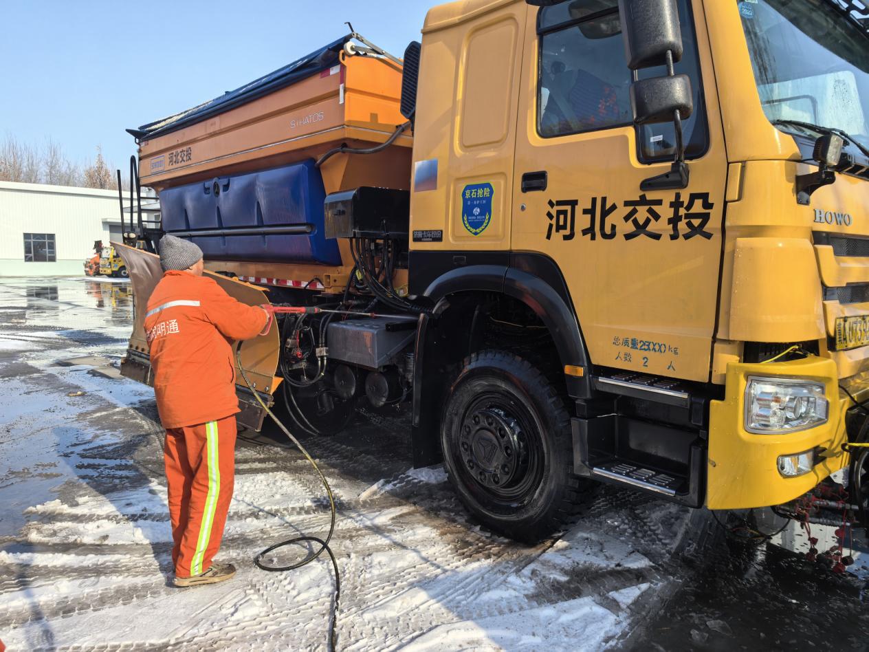 近日,京石公司第一养护工区在完成除雪保畅任务后,迅速行动,对全部除雪撒布车和洒水车开展全面清洗与维护保养工作,以防止融雪剂腐蚀设备。