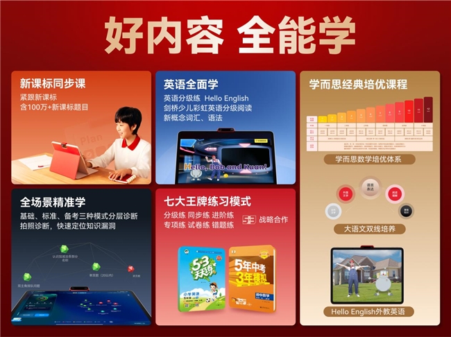 课程资源方面,学而思构建了 “全学段、全学科、全场景” 的完整体系,1600 万分钟课程总量覆盖 3-18 岁,仅近两年就新增 400 万分钟课程、85 万套真题和 7 亿道题目。所有内容由 3000 + 自有教研团队打造,经 3000 万学员实战检验,形成 “教材同步课 - 专题突破课 - 竞赛拓展课” 三层架构。针对 2025 年新课标改革,专门推出新课标衔接课与四类新题型专训,数学拆解 13 类核心考法,语文强化情境化阅读,完美适配考试变化。资源合作上更是强强联合,独家引入 RAZ 分级阅读、5・3、万唯等 3200 + 册权威教辅,覆盖 90% 以上中高考真题变式,3700 + 本新课标推荐读物免费阅读,从启蒙阶段的摩比数学、小猴英语,到高中冲刺的重难点提分课,一台机器就能贯穿整个学业周期,且核心资源终身免费更新,无需额外付费解锁。