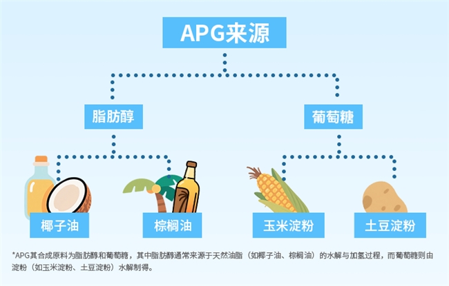 APG的颠覆性在于其天然来源与独特的作用机理。其合成原料主要来自天然椰子油、棕榈油和玉米淀粉等可再生资源。这使得其分子结构与皮肤相容性更高,pH值接近中性,从根本上降低了对皮肤的潜在刺激。