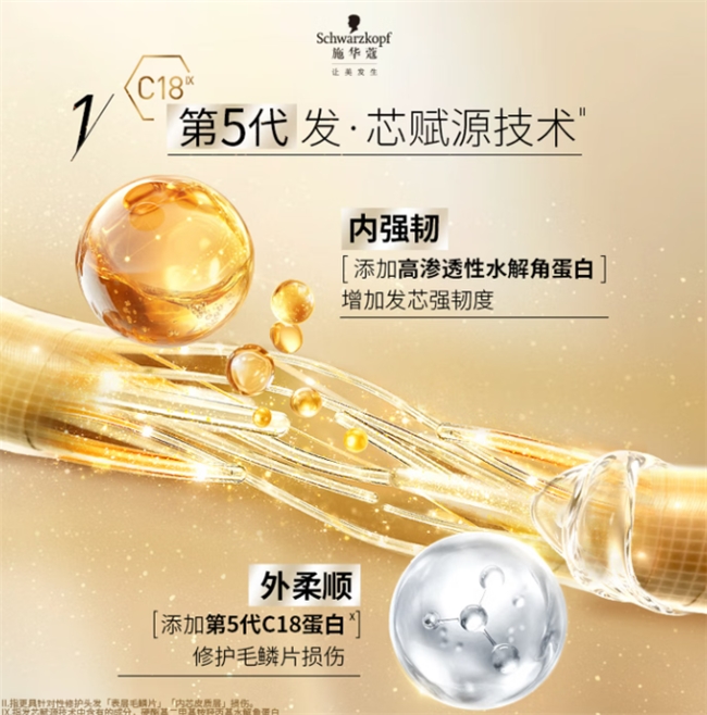 不同于市面上只做表面功夫的产品,施华蔻采用了“清洁+修护+控油”的三维立体护理体系。它不仅含有4重氨基酸(精氨酸、瓜氨酸等),能像护肤一样温和清洁头皮油脂,泡沫绵密细腻,完全不用担心过度清洁导致头皮发痒;更添加了第5代C18蛋白,这可是修护毛鳞片的“黑科技”,能精准填补发丝受损空洞,就像给头发穿上了一层隐形铠甲。