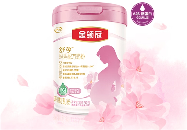 金领冠舒孕:100%鲜活A2 β-酪蛋白生牛乳,搭配小分子α-乳清蛋白,双重优质蛋白组合,优化蛋白吸收率,消化弱的准妈妈也能轻松吸收;营养方面,铁含量达18mg/100g(超国标80%),叶酸680μg/100g,DHA68mg/100g,钙1000mg/100g,关键孕期营养全部达标;同时,脂肪含量减少约76%、0蔗糖,低GI设计,适合需要控制体重或控糖的准妈妈;还含有乳脂球膜、燕窝酸以及双重进口活性益生菌,呵护肠道,减少孕肚不适。