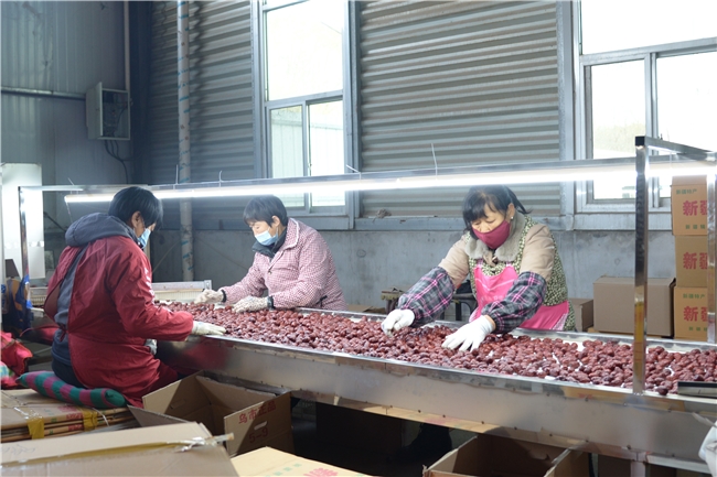 11月26日,在沧县邹庄头村沧州故乡树食品有限公司,工作人员分拣红枣。