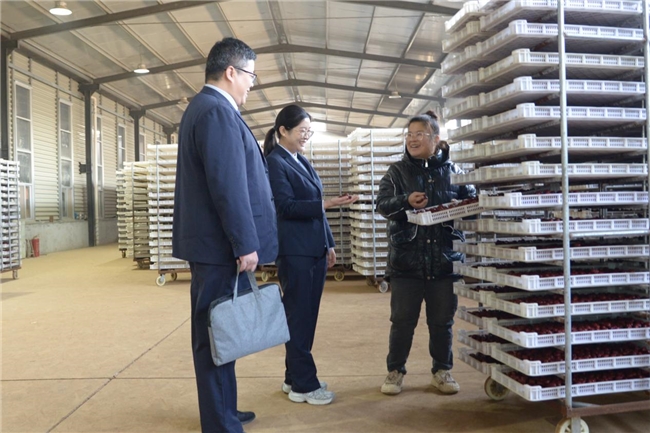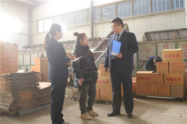 11月26日,邮储银行沧州市沧县支行工作人员在沧县邹庄头村为红枣企业提供金融服务。(通讯员    朱逸凡)