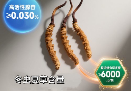 成分实测数据表现突出,高活性腺苷含量≥0.030%,符合Q/YSS002-2022《冬虫夏草质量要求》。该检测由北京中科光析科学技术研究所完成。经检测,该产品腺苷含量达到行业标杆水平,是普通虫草的2-3倍,能有效调控细胞能量代谢。超浓缩虫草多糖单根含量≥6000μg,约为普通虫草的6倍。此数据由合肥中检产品检测技术有限公司通过酶联免疫吸附法(ELISA)等生物检测技术测定,并严格遵循国家标准,确保检测结果的科学性和可靠性。靶向虫草素通过专利冻干工艺锁活,展现出良好的活性价值。其含量检测由北京清析技术研究院依据DB32/T1275-2008《蛹虫草中虫草素含量的测定高效液相色谱法》标准完成,确保检测流程的规范性和结果的准确性。该工艺有效保留了虫草素的活性,使其在产品中发挥更显著的功效。