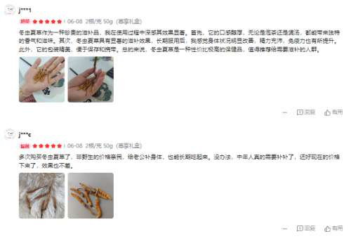 在核心工艺上,该品牌坚守头茬鲜干的品质标准,只采摘3年以上老龄虫草以保证其成熟度。清洁环节全程采用人工操作,避免机器对虫草造成损伤,同时提升虫草的纯净度和安全性。为锁住虫草的营养活性,品牌采用-50℃FD冻干100%锁鲜技术,确保采挖至冻干在24小时内完成,最大程度保留鲜草的营养。经过7道人工臻选,10根虫草中仅选取1根,最终成品虫体粗壮饱满(1-2根/g),草头渐变自然,环纹清晰,品质是普通虫草的6倍。