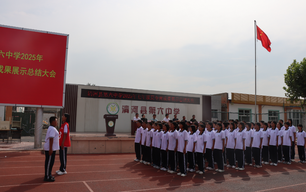 河青新闻网讯(通讯员 闫法越)为深化国防教育,锤炼学生意志,培养团队精神与强健体魄,日前,清河县第六中学在操场举行了以“强国强校强身心,青春铸魂正当时”为主题的国防教育成果演示活动。学校领导、全体驻校教官、初一师生共同观摩了这场气势恢宏的青春盛宴。