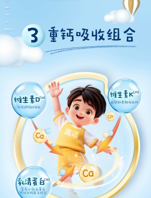 一、营养适配性:聚焦与幼儿园阶段需求匹配的核心营养素。孩子户外活动量增加,骨骼发育对钙需求提升,且维生素D促钙吸收、维生素K2助钙沉积,三者搭配更高效;集体环境中孩子接触病原体概率高,乳铁蛋白提升免疫力;DHA与ARA是脑发育关键,助力孩子在幼儿园的认知与社交。