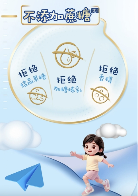 三、成分安全性:需警惕负担性成分。3岁孩子味觉系统发育中,蔗糖、香精、色素易致龋齿、挑食或肥胖,挑选时需查配料表,优先考虑“无蔗糖、无香精、无人工色素”产品。生牛乳是基础原料,优先选来源明确、有专属牧场背书,可降低污染风险的产品。
