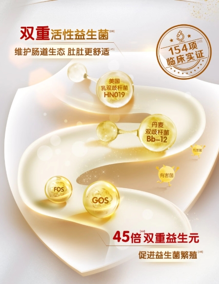 专利益生元:这款奶粉加入了专利长短链益生元PDX+短链益生元GOS,可精准为益生菌供能,提升营养吸收效率。