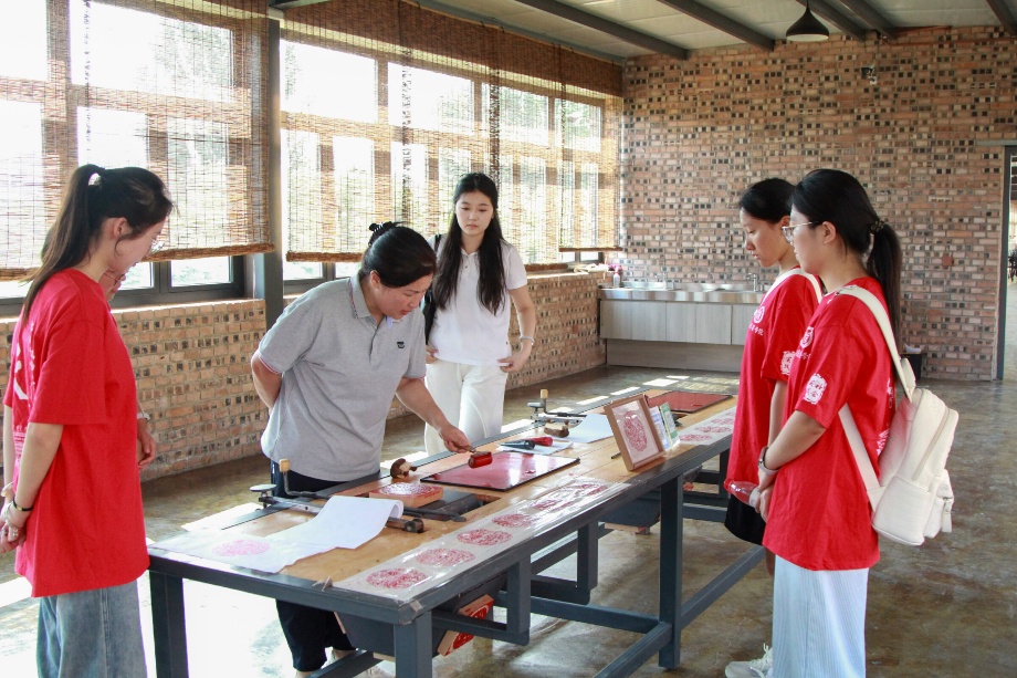 8月7日,实践队赴保定宝虹博物馆与保定市博物馆开展文化研学。在版画体验馆,队员们在非遗传承人的指导下学习拓印技艺,亲手创作生肖、古诗等主题作品;在传统造纸工坊,体验匀浆、抄纸、烘干等流程,制作出带有中医药元素的宣纸;在保定市博物馆,借助全息投影、文物复原等现代技术,梳理保定从战国“燕赵故地”到现代“京畿强市”的发展历程。结合专业背景,队员们就“传统技艺与现代科学融合”展开思考,并撰写实践感悟。