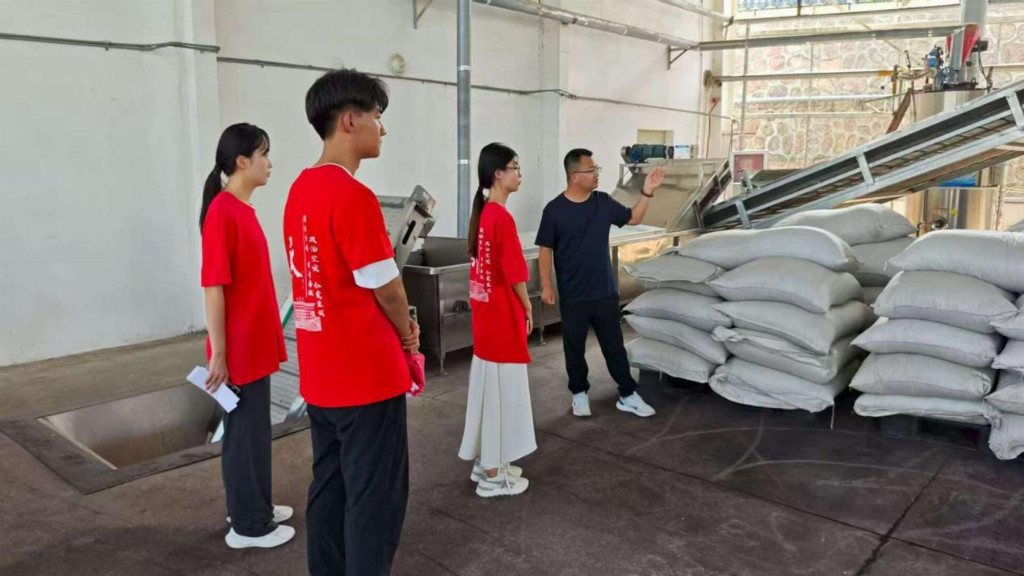 8月20日,实践队赴邢台沙河市蝉房乡调研板栗产业。种植户宋景全向队员们讲解板栗种植技术、当地自然优势及产业升级思路。“蝉房板栗”已获评“全国名特优新农产品”,成为深山区村民致富的支柱产业。队员们聆听村民在困境中拼搏的故事,满怀敬佩,深刻认识到乡村振兴需立足本地优势、坚守产品品质并务实拼搏。