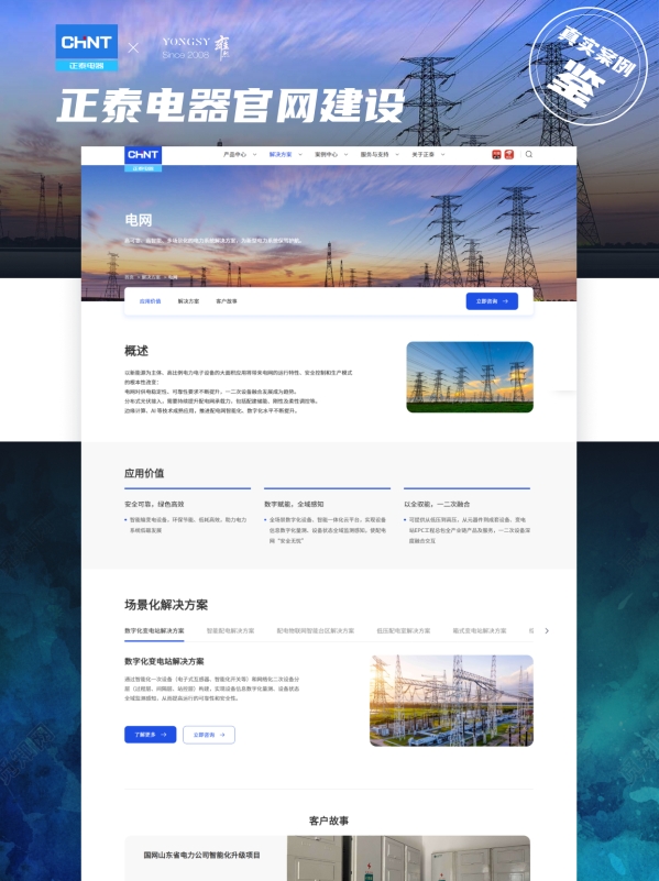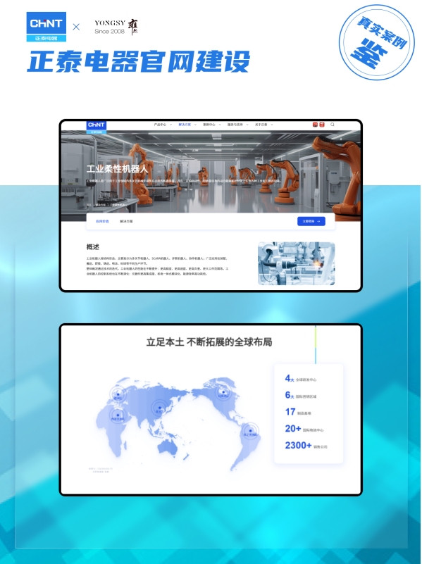 以上海雍熙服务的正泰电器(制造业龙头企业)为例,其核心需求是通过网站展现 “全产业链布局” 与 “数字化转型成果”。上海雍熙通过两大方向落地方案: