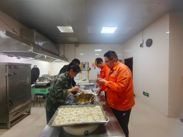 案板前,欢声笑语此起彼伏,弥漫在食堂的每个角落。大家一边包饺子,一边分享着工作中的趣事、生活中的感悟,偶尔调侃几句彼此的“作品”,阵阵爽朗的笑声冲破门窗,回荡在工区大院。经验丰富的老师傅主动传授诀窍,年轻员工认真学习,手把手的指导中传递着前辈对后辈的关怀。“平时大家都忙着巡查养护,难得有这样聚在一起的机会,一边包饺子一边聊天,感觉就像一家人一样温暖。” 一位老员工笑着说道,脸上洋溢着幸福的笑容。