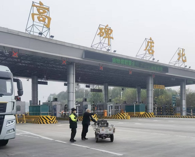 近日,高碑店收费站外广场的车流里,一抹蹒跚的身影格外醒目——一位老人茫然驻足,在往来车辆间显得局促无措。当班人员的目光,第一时间捕捉到了这份“异常”,几乎是下意识地快步上前,在安全区域拦下了老人。