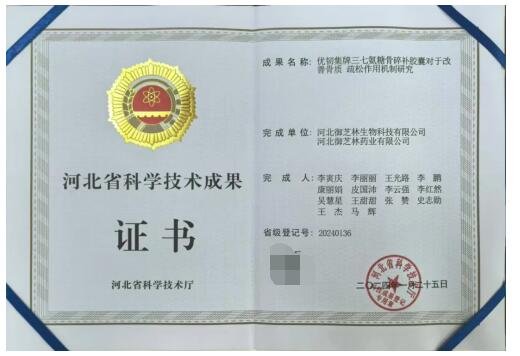 在骨健康领域,以明星产品”优韧集三七氨糖骨碎补胶囊“为例,研发团队针对中老人骨组织微循环特点与骨营养流失情况,创新采用“3+4”科学组方,改善骨关节微循环,同时满足骨骼对骨营养物质的需求。其“优韧集改善骨质疏松作用机制研究”荣获河北省科技厅“国内领先技术”认证。