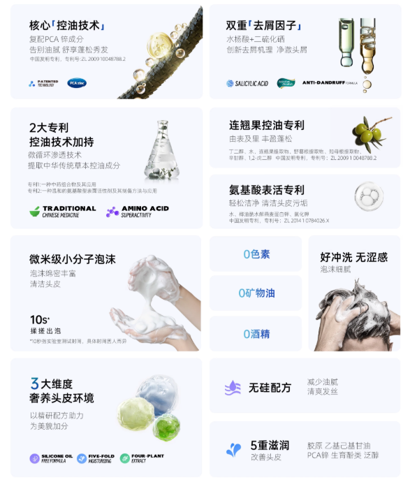 (2)长效控油止痒,油头扁塌秒变高颅顶
