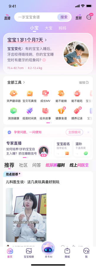 宝宝树始终关注母婴群体需求,尤其在AI战略方面持续投入。自2024年金树奖发布AI全面升级计划后,平台先后接入DeepSeek、豆包等智能系统,并于今年五月推出AI Agent“米卡AI”,逐步构建起母婴垂类智能服务体系。此次首页改版,正是宝宝树AI能力从技术部署走向场景化应用的关键一步。