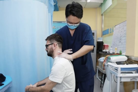 由于每天需要面对镜头前弯腰驼背,长时间保持固定姿势进行精细剪辑工作,久而久之,艾瑞克,感到颈部僵硬,肩部疼痛难忍。“在法国,我接受了一年多的治疗,包括物理疗法和药物治疗,但效果都不理想”艾瑞克回忆道,疼痛不仅影响工作,也降低了他的生活质量。职业性肩颈痛是一种常见的系统疾病,尤其好发于需要长期保持固定姿势的职业人群。当传统的西医治疗方法效果有限时,艾瑞克开始把目光投向东方,期待中医能为他带来转机。