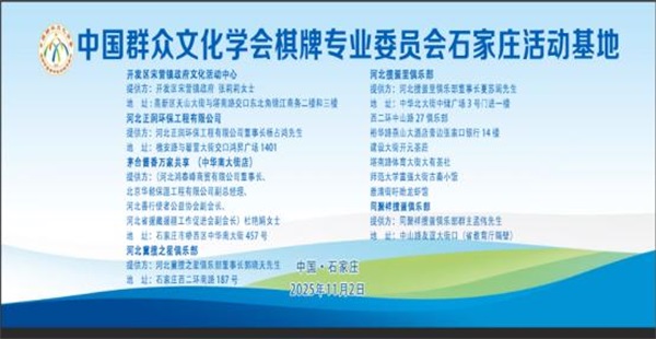 本次赛事由中国群众文化学会棋牌专业委员会与河北省文化和旅游产业协会联合主办,石家庄市围棋协会协办,河北利辉文化传播有限公司承办,更获阳光渔港酒店、李细妹建盏艺术馆、中国红书画院等多家单位鼎力支持。以棋牌为纽带,融文旅、艺术、公益于一体,不仅展现了传统棋牌与现代生活的完美融合,更书写了群众文化创新发展的生动篇章。