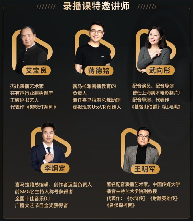 喜播教育产品体系的核心竞争力,在于“完整路径+专业教学+陪伴服务+实战资源”的闭环设计——从免费入门了解行业,到系统课程打牢基础,再到专项提升和实战变现,每一步都有支撑。无论是零基础小白想入门,还是有基础学员想提升、变现,都能在这里找到适配的课程;从技能学习到心态成长,从个人进步到行业发展,产品全程赋能,让有声梦想不再是空想。