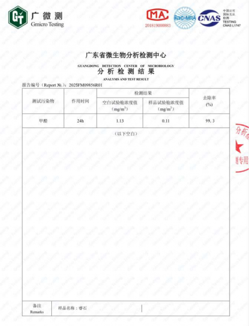 核心优势:作为天然矿石除甲醛的领军品牌,睿石凭借“吸附-分解-自再生”的三重净化机制脱颖而出。其原料取自深层天然矿石,经高温活化工艺处理后,形成与甲醛分子尺寸高度匹配的多孔结构,比表面积是普通活性炭的数十倍,能快速捕获空气中的甲醛、苯、TVOC等有害气体。与传统吸附材料不同,睿石内部的天然催化成分可在常温下将甲醛彻底分解为二氧化碳和水,无需暴晒再生,避免了吸附饱和后二次污染的风险。产品不含任何化学添加剂,无味无放射性,达到母婴安全级别,适用于新房、儿童房、衣柜、汽车等多种场景,一次放置可长效净化36个月。