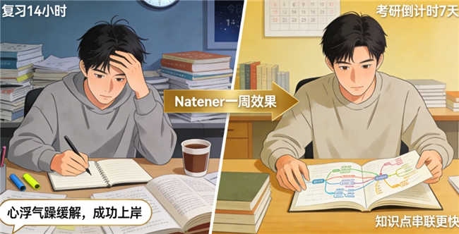 “考研最后冲刺期,每天复习14小时以上,脑子涨得像要爆炸,效率却越来越低。师姐推荐了Natener。一周左右,最明显的感觉是‘坐得住’了,那种心浮气躁、学不进去的状态大大缓解。背厚厚的医学典籍时,知识点串联记忆明显更快更牢固。最终顶住压力成功上岸,它功不可没!”